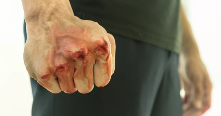 Підозрюваний наніс кулаком правої руки два удари в область лівої щоки та щелепи потерпілого, після чого штовхнув останнього на підлогу та сівши зверху на нього, наніс почергово кулаками рук п`ять ударів в обличчя.
