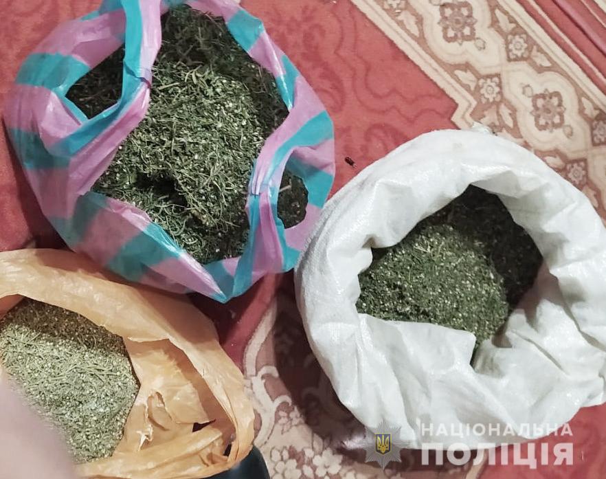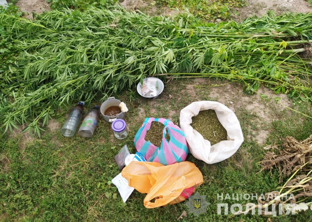 У результатi виявили насадження понад 160 рослин конопель, сухi кущi маку та насiння, близько 3 кг подрiбнених конопель, пристрiй для вживання наркотичних засобiв.