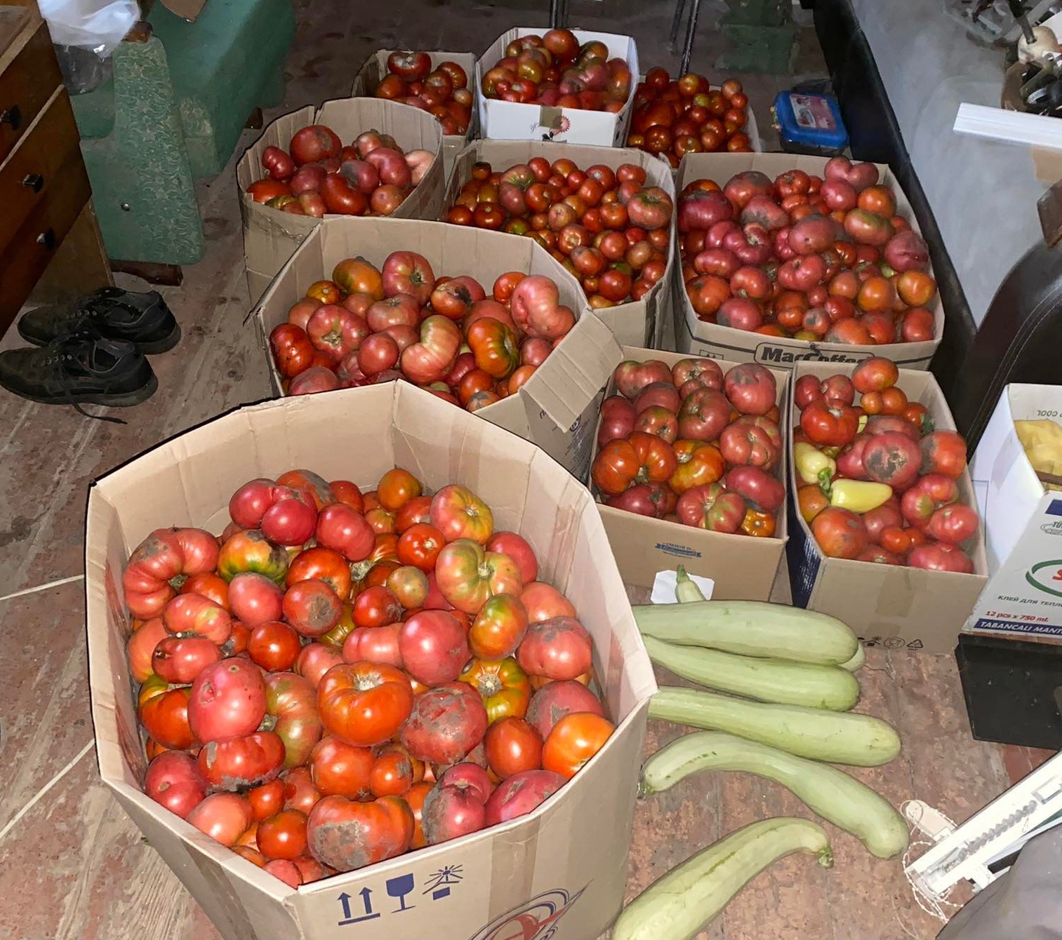 На минулому тижнi зiбрали i переробили на сок врожай помiдорiв. Маємо 350 лiтрiв томату.