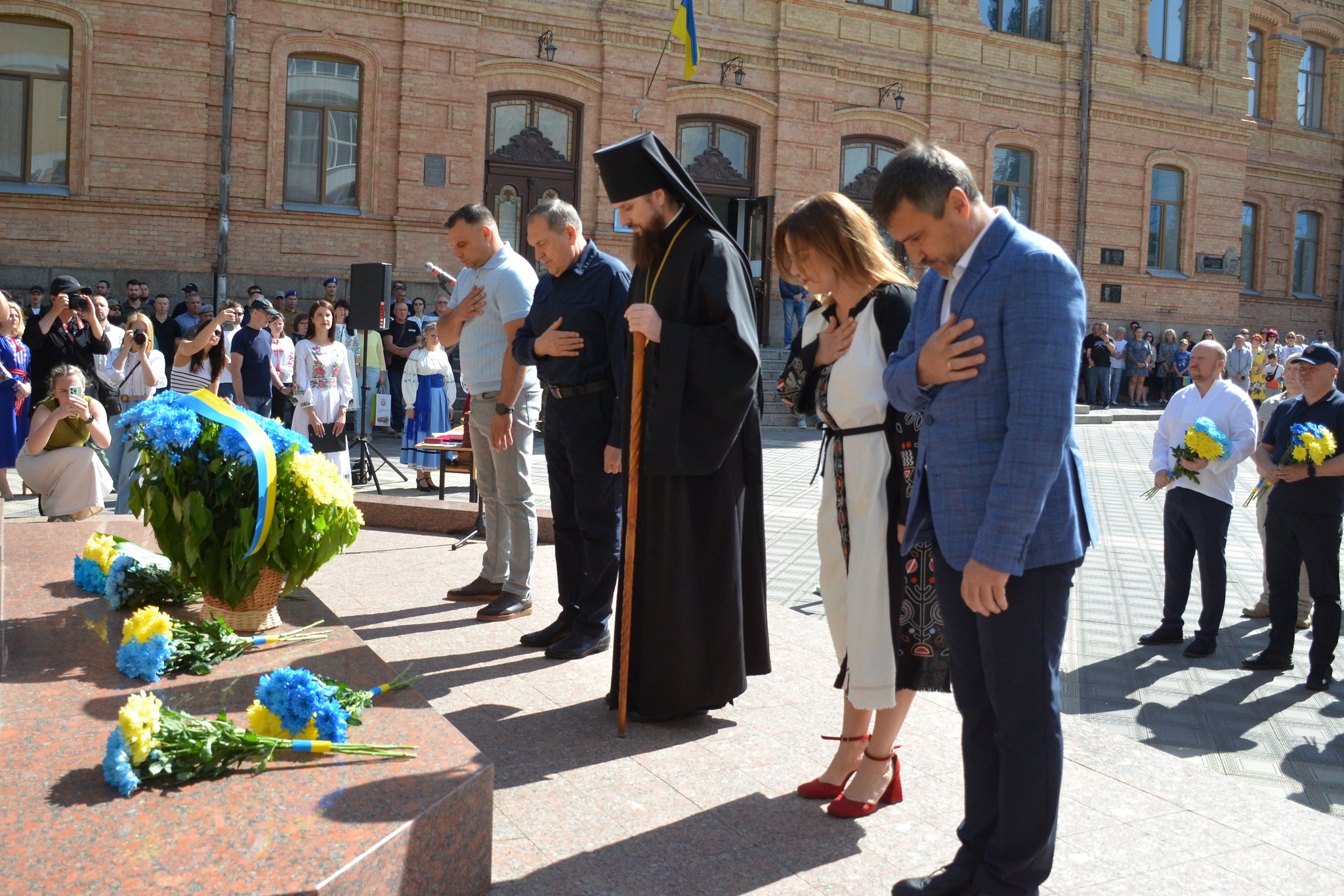 Квіти до пам’ятника Володимиру Винниченку поклали перший заступник голови Кіровоградської обласної ради Юрій Семенюк, начальник ОВА Андрій Райкович, секретар міської ради Кропивницького Олег Колюка, архієпископ Голованівський та Кропивницький Марк, представники силових структур та військових формувань Кіровоградщини, волонтери, представники місцевих органів виконавчої влади та місцевого самоврядування, жителі обласного центру.