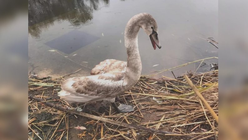 Юлія розповіла, що лебідь живе у неї другий місяць. Його побачила на фото, які зазнімкував місцевий житель.