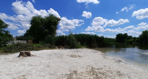 На вихiдних тут обрiзали сухе гiлля з дерев, розчистили прибережну зону вiд заростiв, завезли рiчковий пiсок та вирiвняли майбутнє мiсце для вiдпочинку за допомогою спецiалiзованої технiки. В ходi реалiзацiї проєкту також передбачено облаштування лавок для сидiння та урн для смiття.